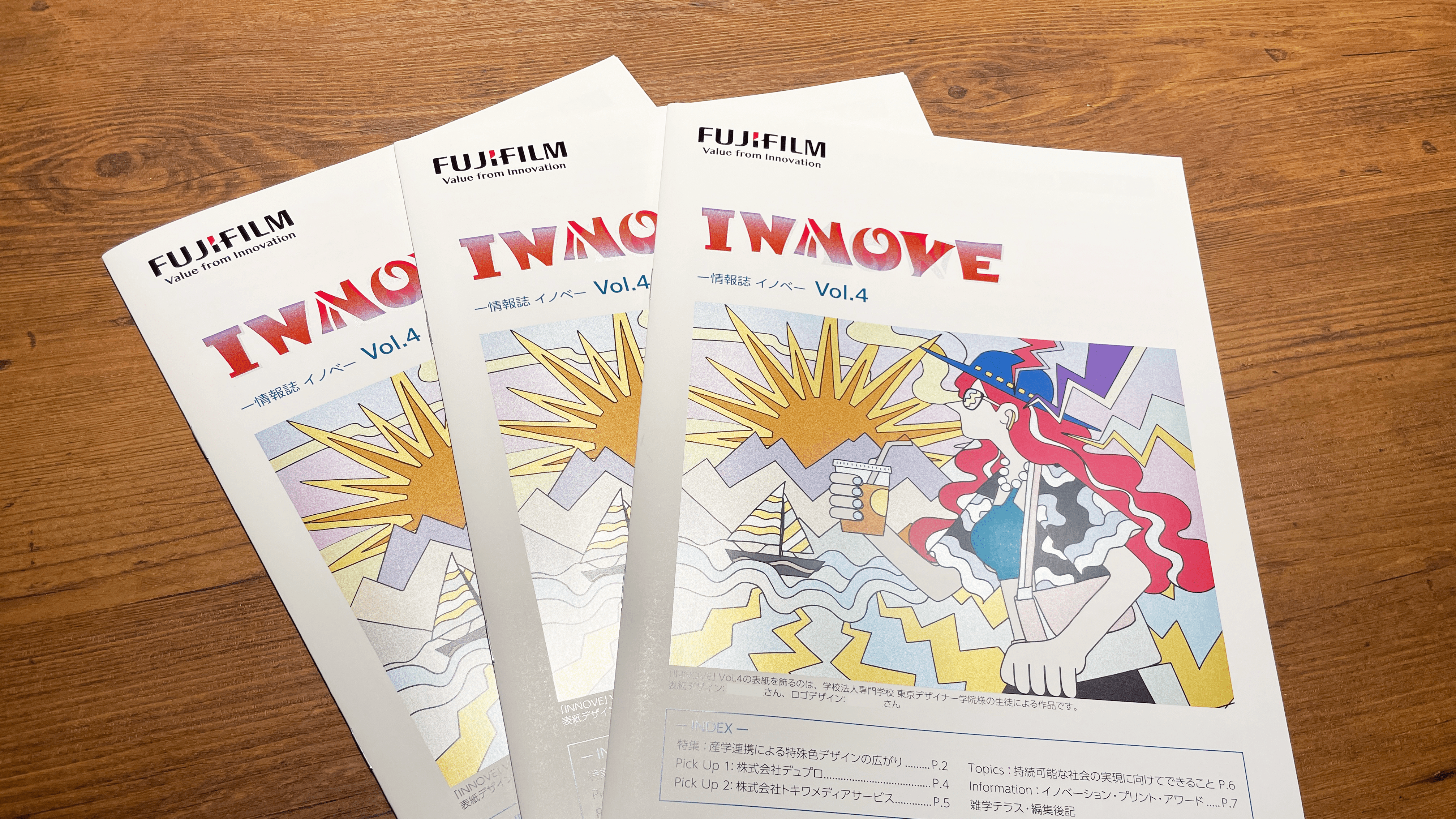 グラフィックデザイン学科とイラストレーション学科の学生がデザインした表紙とロゴが富士フイルムビジネスイノベーションジャパンの社内報になりました! 作り手側に特殊色をもっと知ってもらいデザインの可能性を